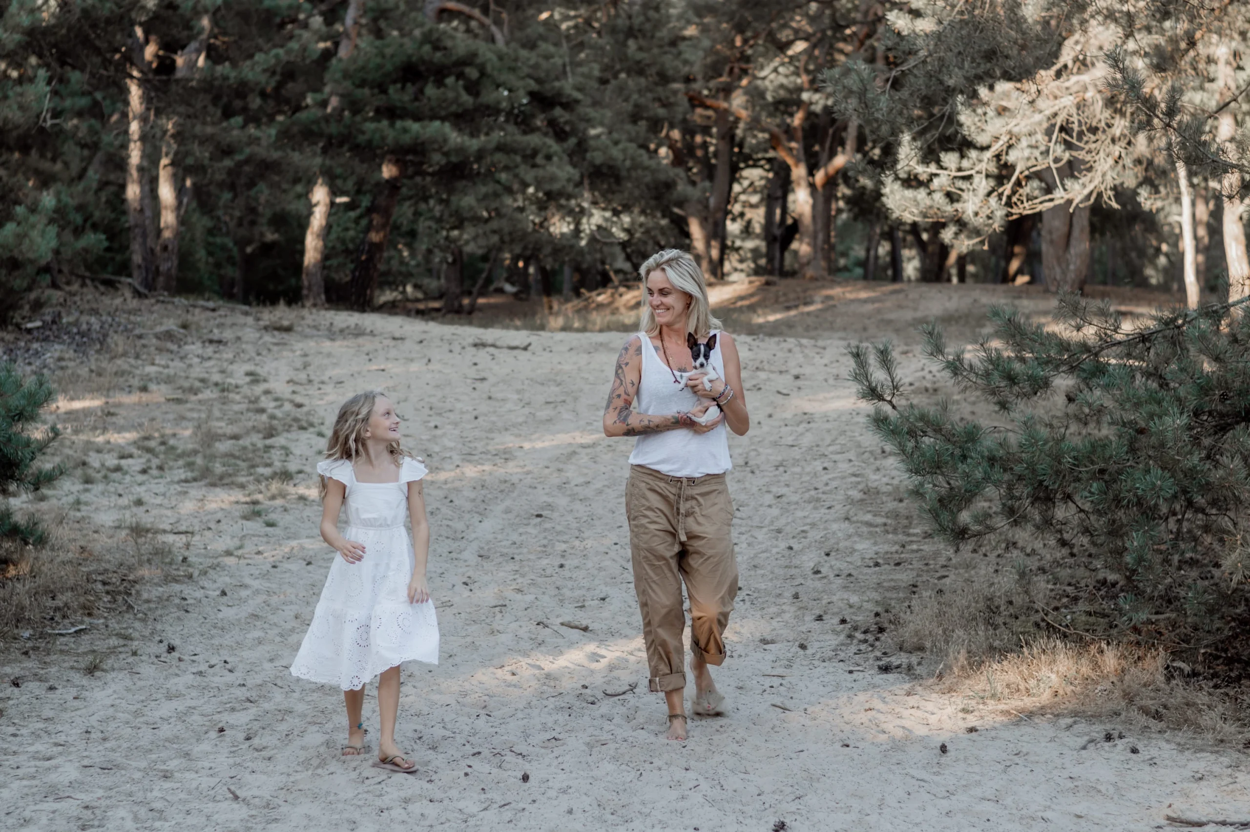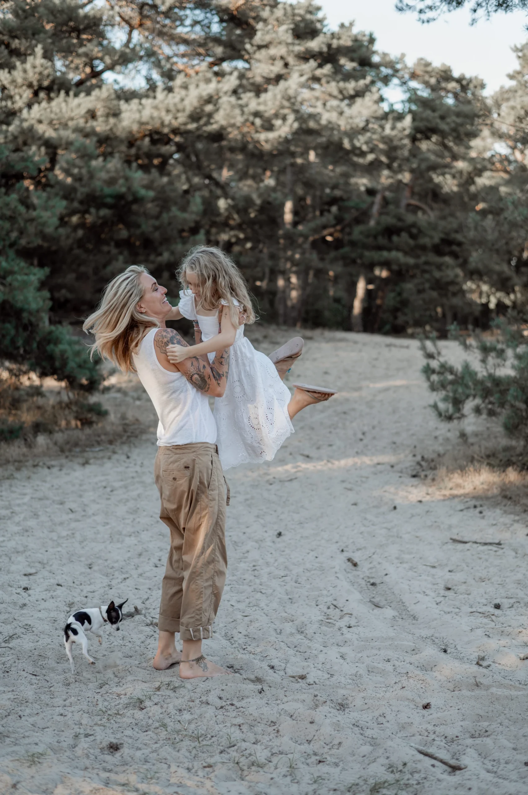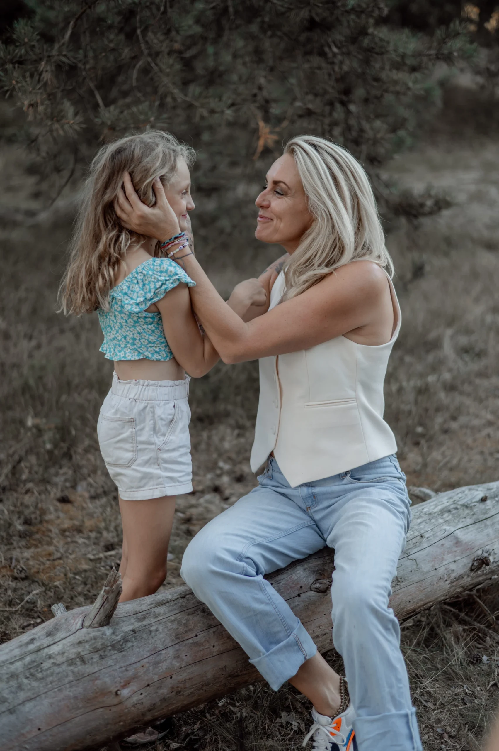 Wat een liefdevolle moeder-dochtershoot. Ik mocht Sjaakie en Billie fotograferen in een prachtig bos met zandvlakte tijdens het golden hour. Wat hebben we lol gehad en wat een prachtige liefdevolle beelden hebben we gemaakt. Het licht is prachtig in combinatie met de kleuren van het bos en het zand.