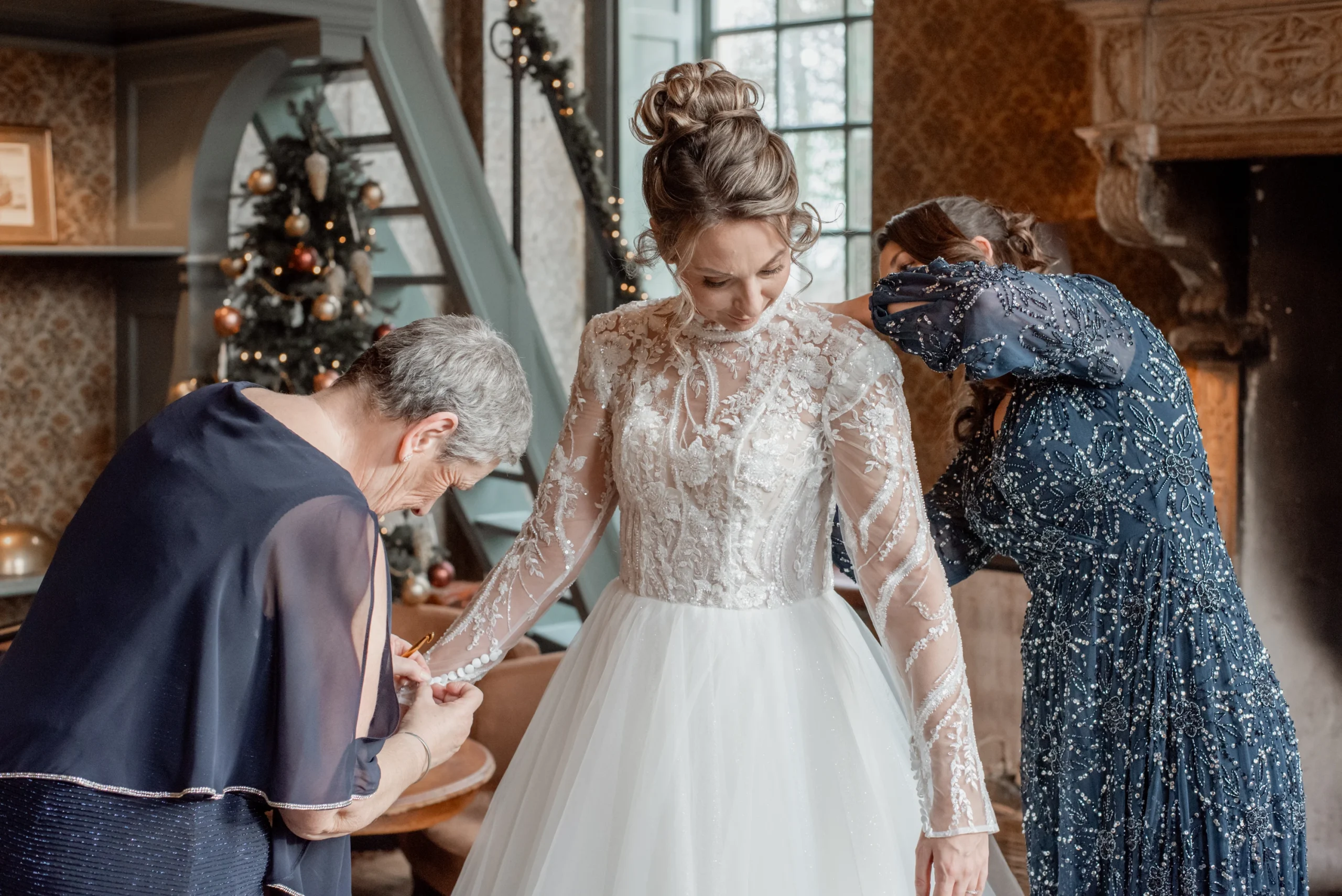Trouwen in hartje winter… niet veel bruidsparen kiezen voor de koude wintermaanden. Veel mensen gaan toch voor de zomerperiode, maar in de winter trouwen is heel erg sfeervol. Wat een gezellig kasteeltje is dit. Helemaal in kerststijl… Deze bruiloft was dan ook tussen kerst en oud en nieuw. En zeg nou zelf… is het niet gezellig?!